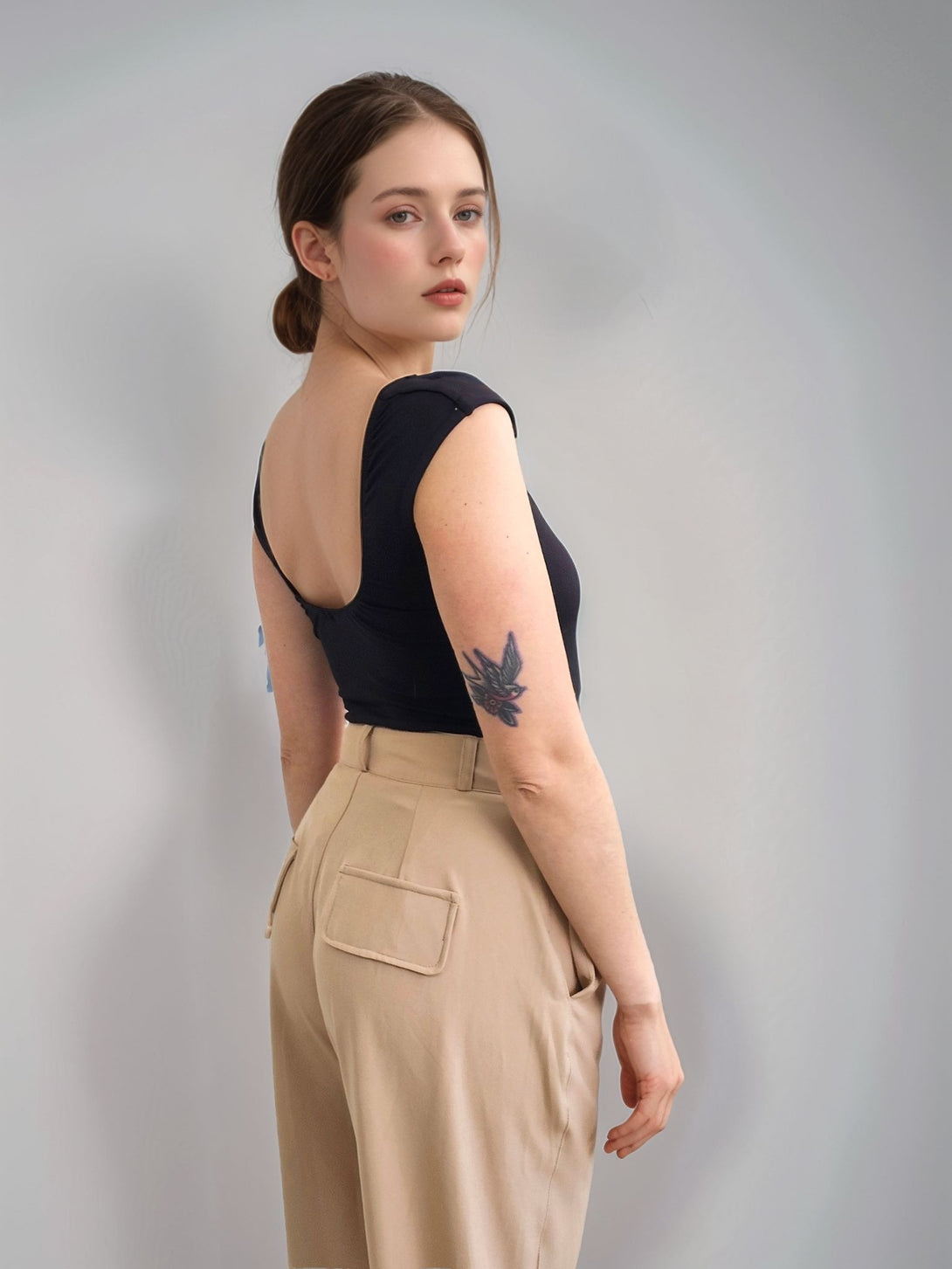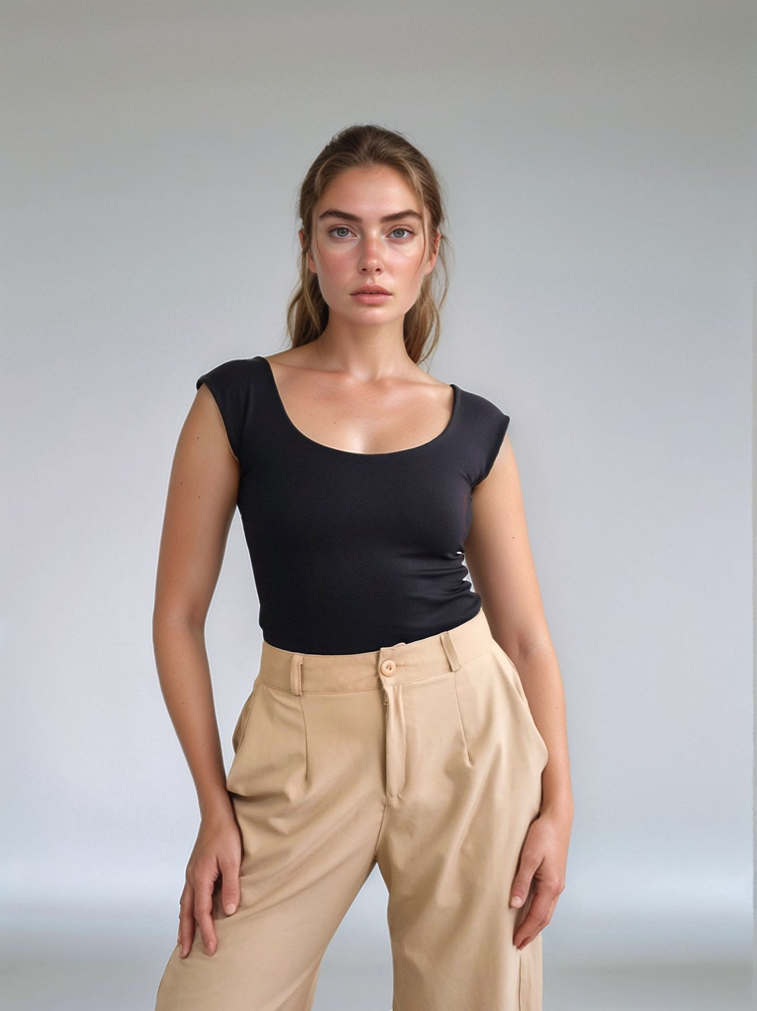 Body básico con escote en forma de U tanto en el frente como en la espalda, cuenta con doble tela en la parte delantera y cierre de broche en el panty para mayor comodidad y ajuste.