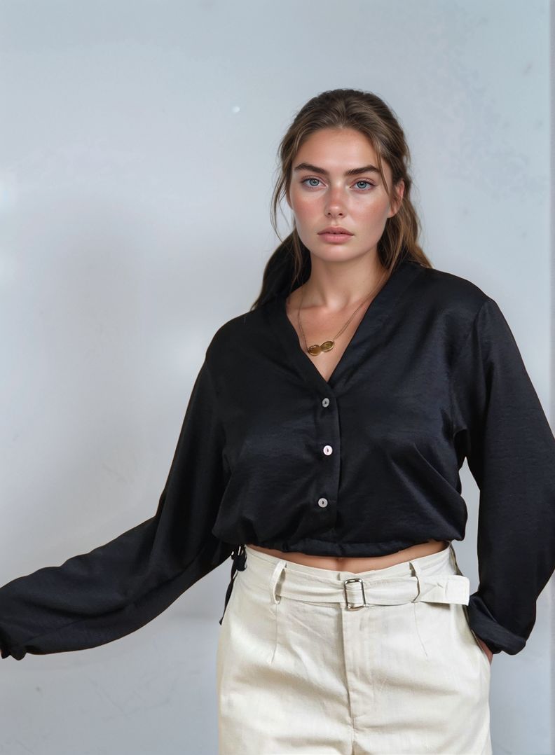 -Esta blusa de manga murciélago es perfecta para cualquier ocasión. Con su diseño único y moderno, te hará destacar en cualquier multitud. Además, su tela suave y cómoda garantiza un gran ajuste y comodidad durante todo el día. ¡Haz una declaración de moda con esta increíble camisa