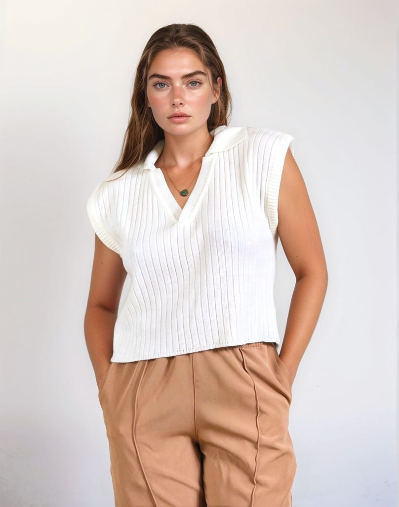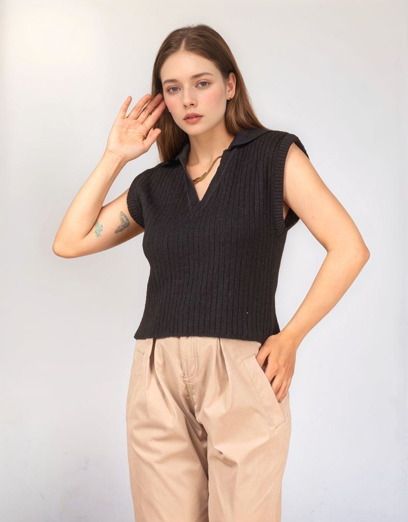 - DISEÑO: ESCOTE V, CUELLO TIPO POLO, CUERPO EN CANAL ANCHO, SILUETA ANCHA