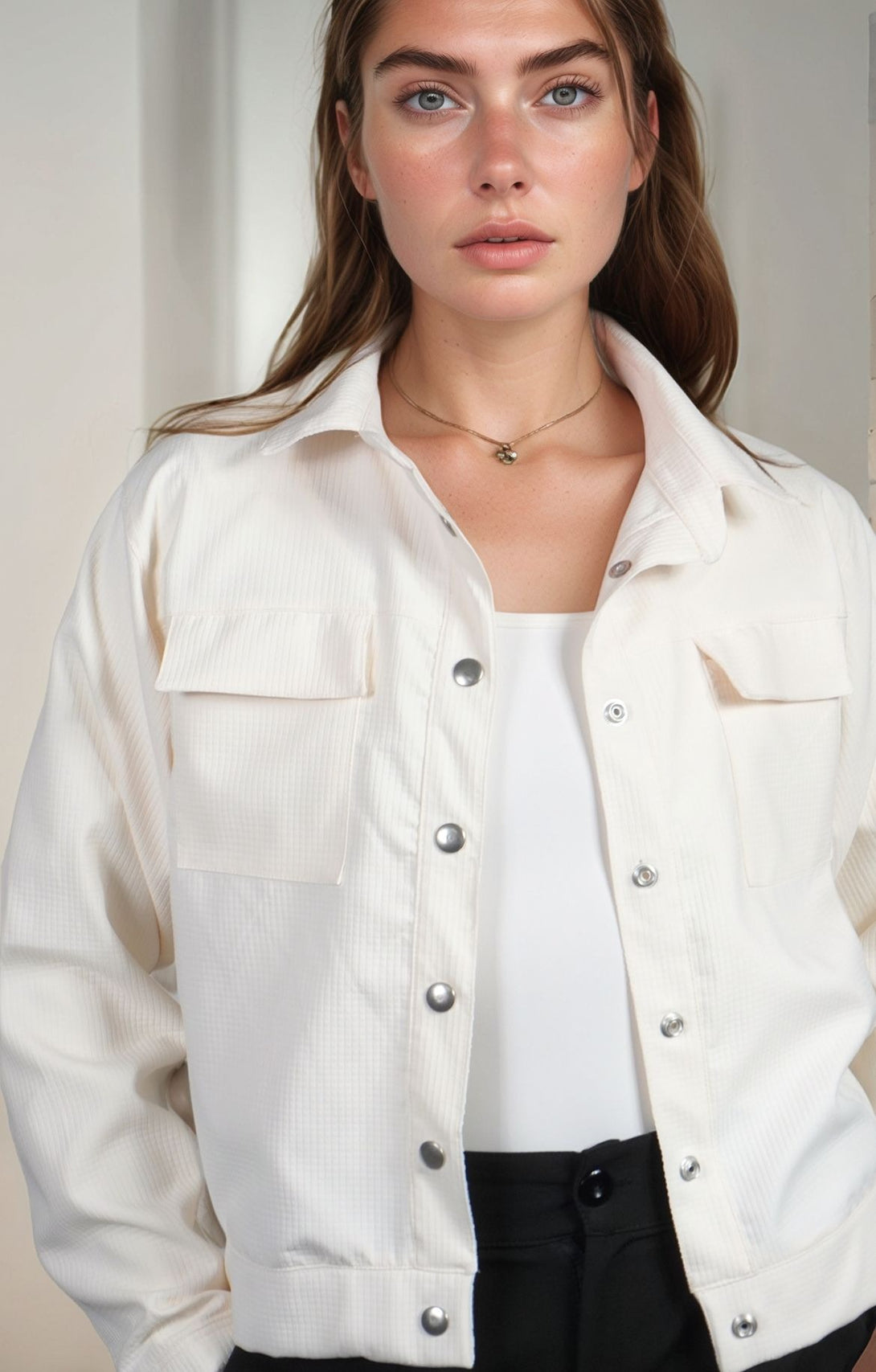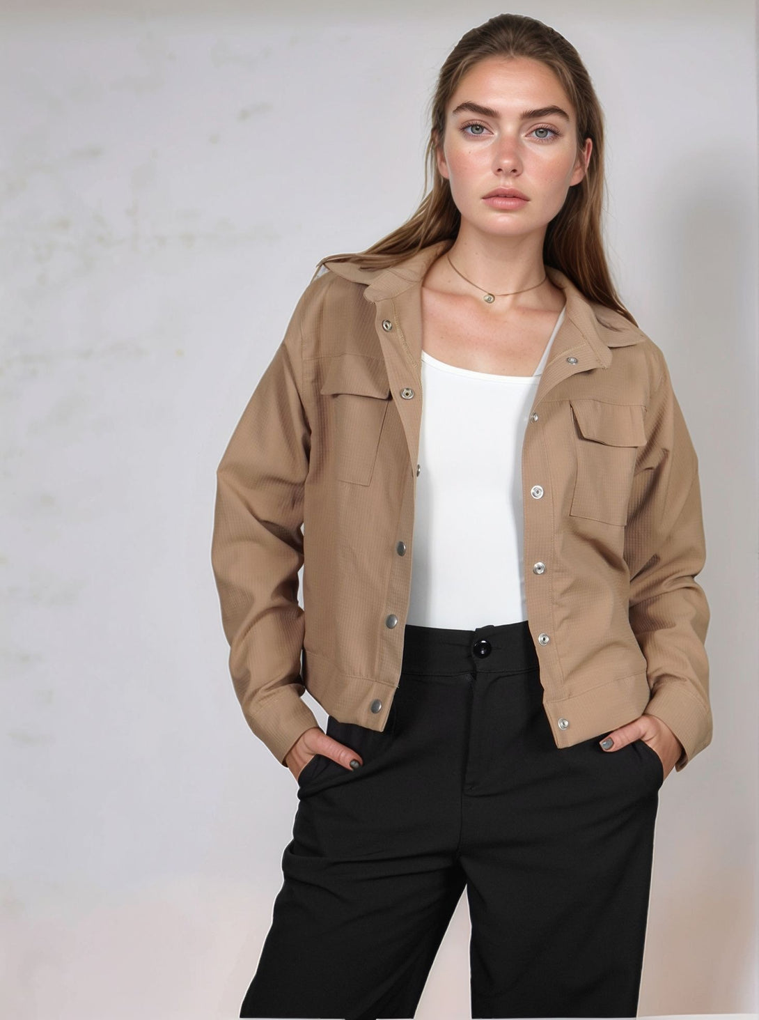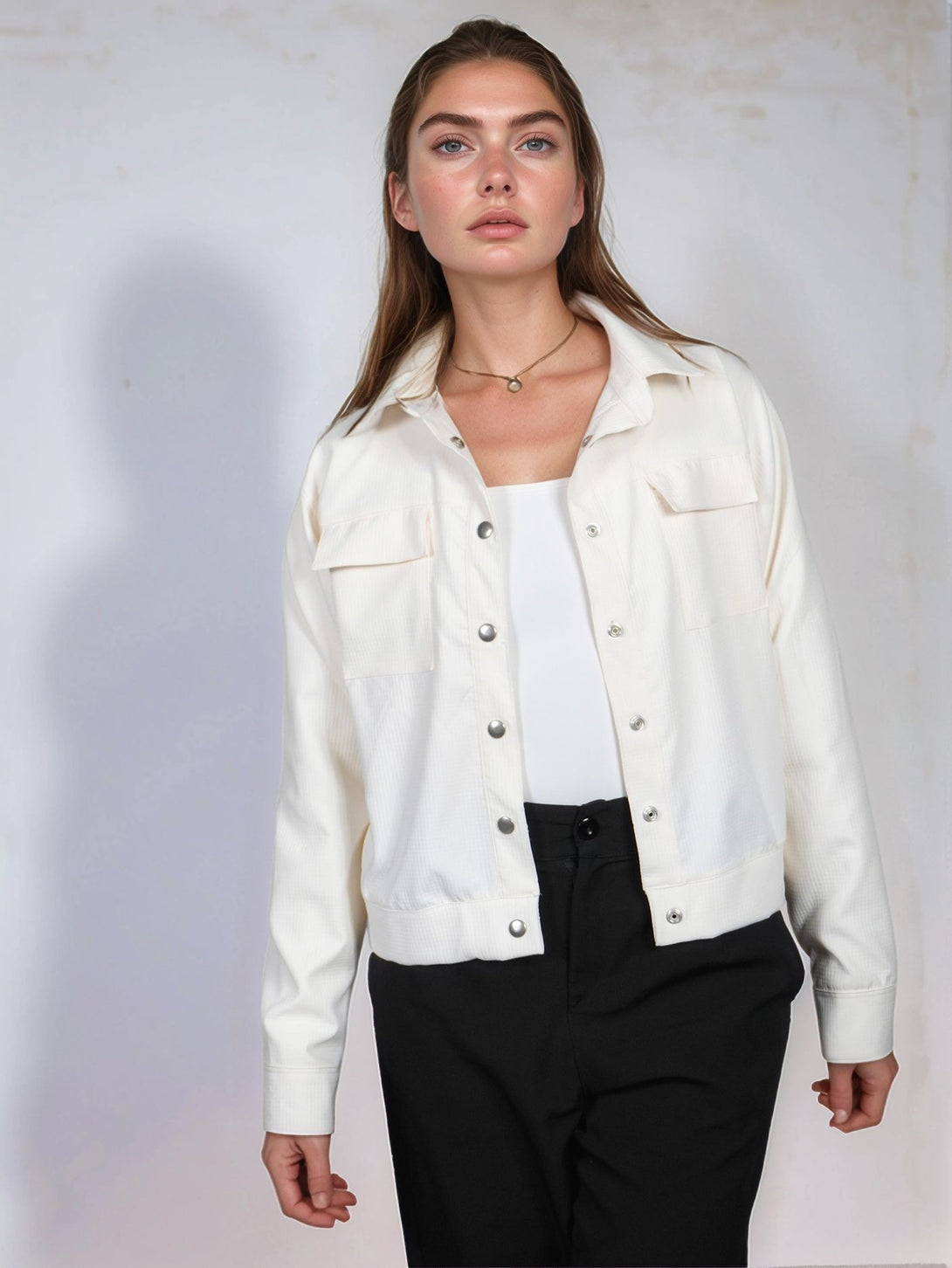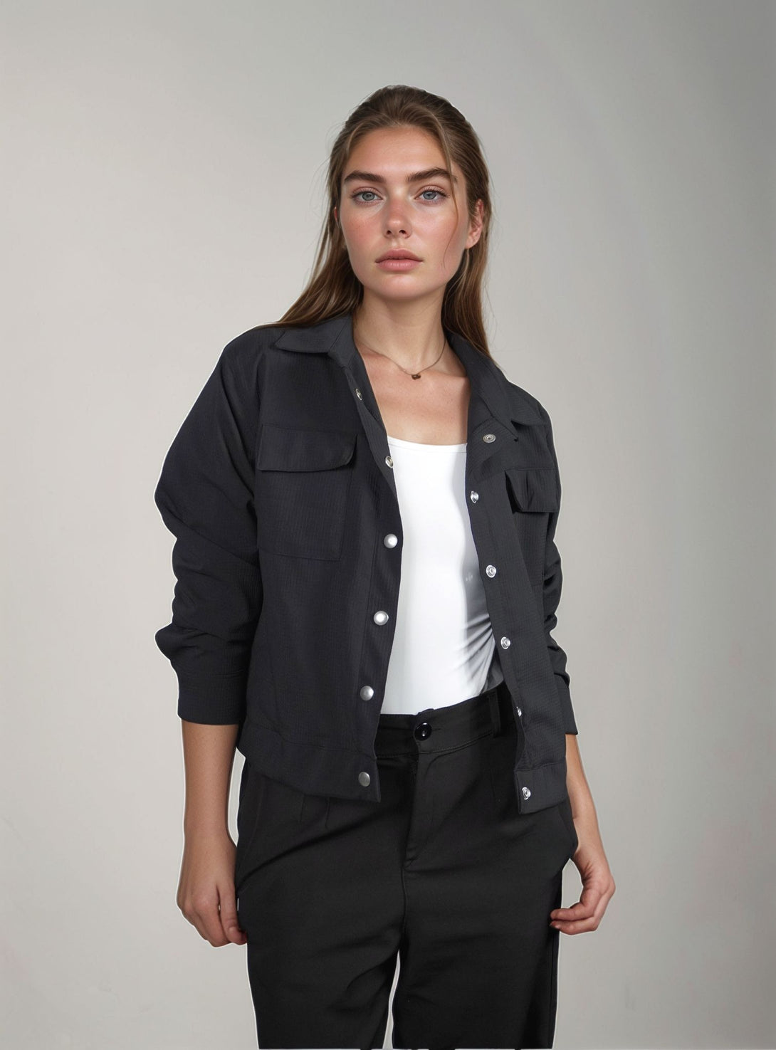 Chaqueta elaborada en tela con textura, perfecta para usar en el dia a dia, la puedes combinar con jeans o sudadera