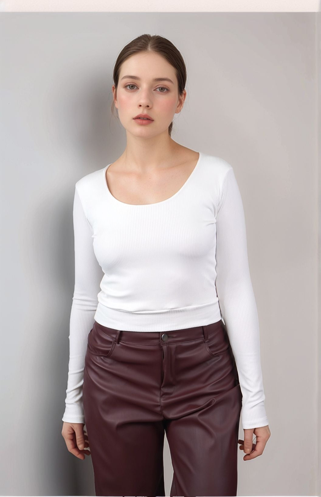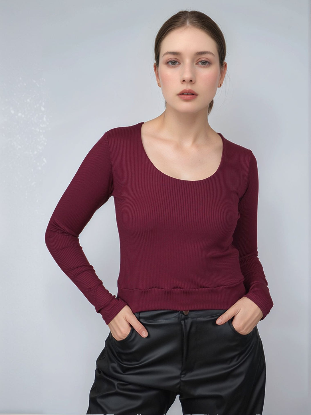 Top básico con cuello en U, confeccionado con doble capa de tela en la parte frontal y pretina ajustada en el contorno.