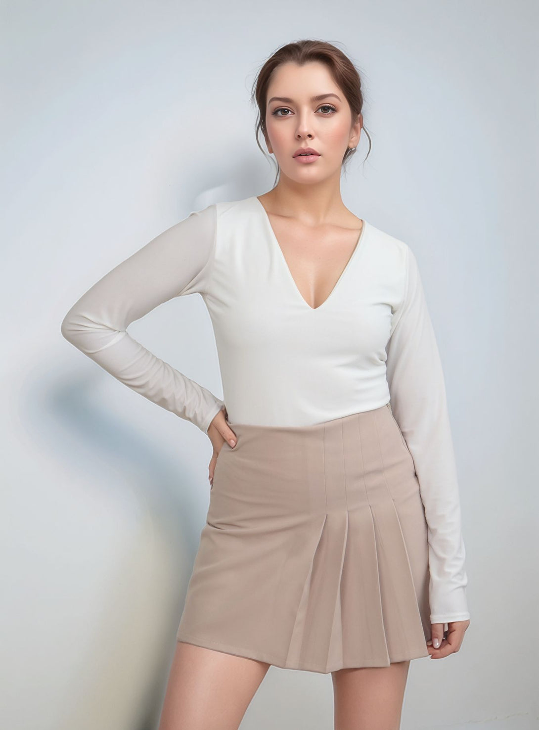 Short falda con pliegues y forro interior, confeccionada en tejido tipo sastre de la colección Noches de Viena.