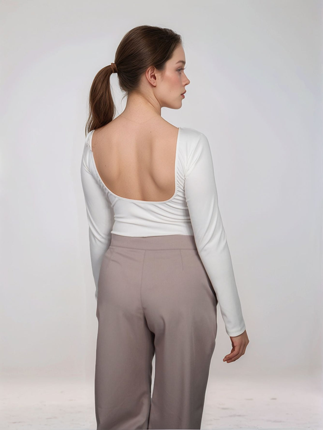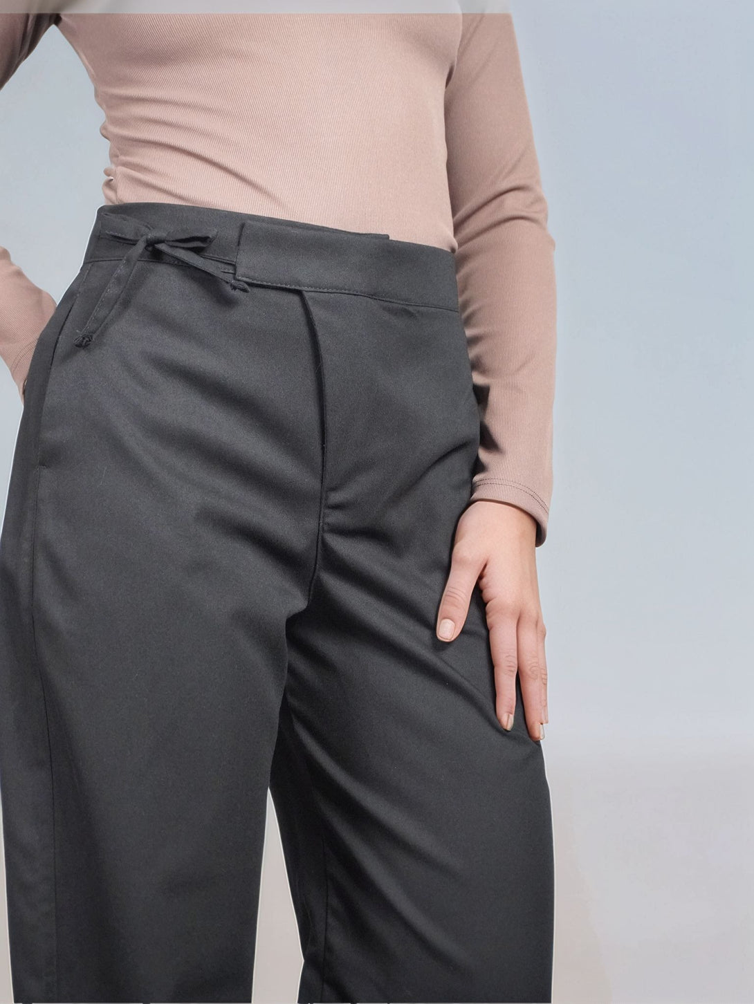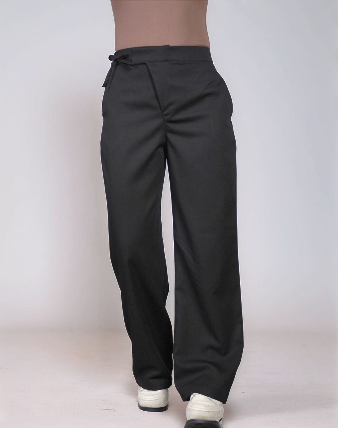 PANTALON ELEGANTE BOTA RECTA CON AMRRE DE CORDON Y BROCHE INTERNO