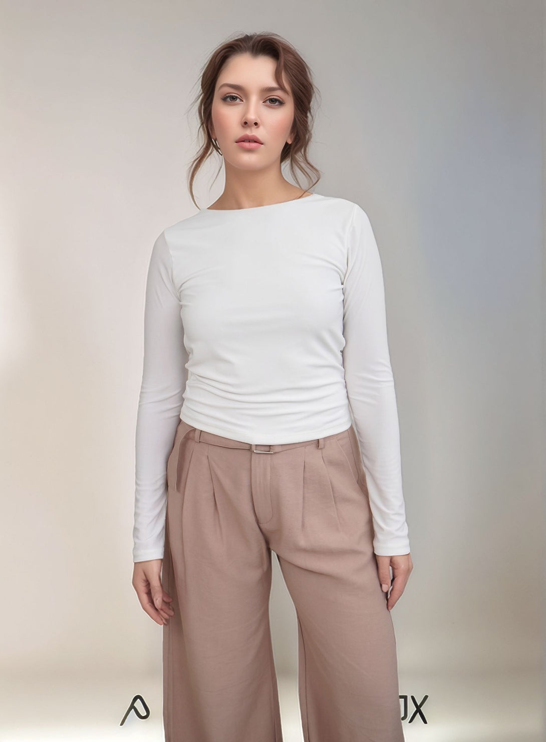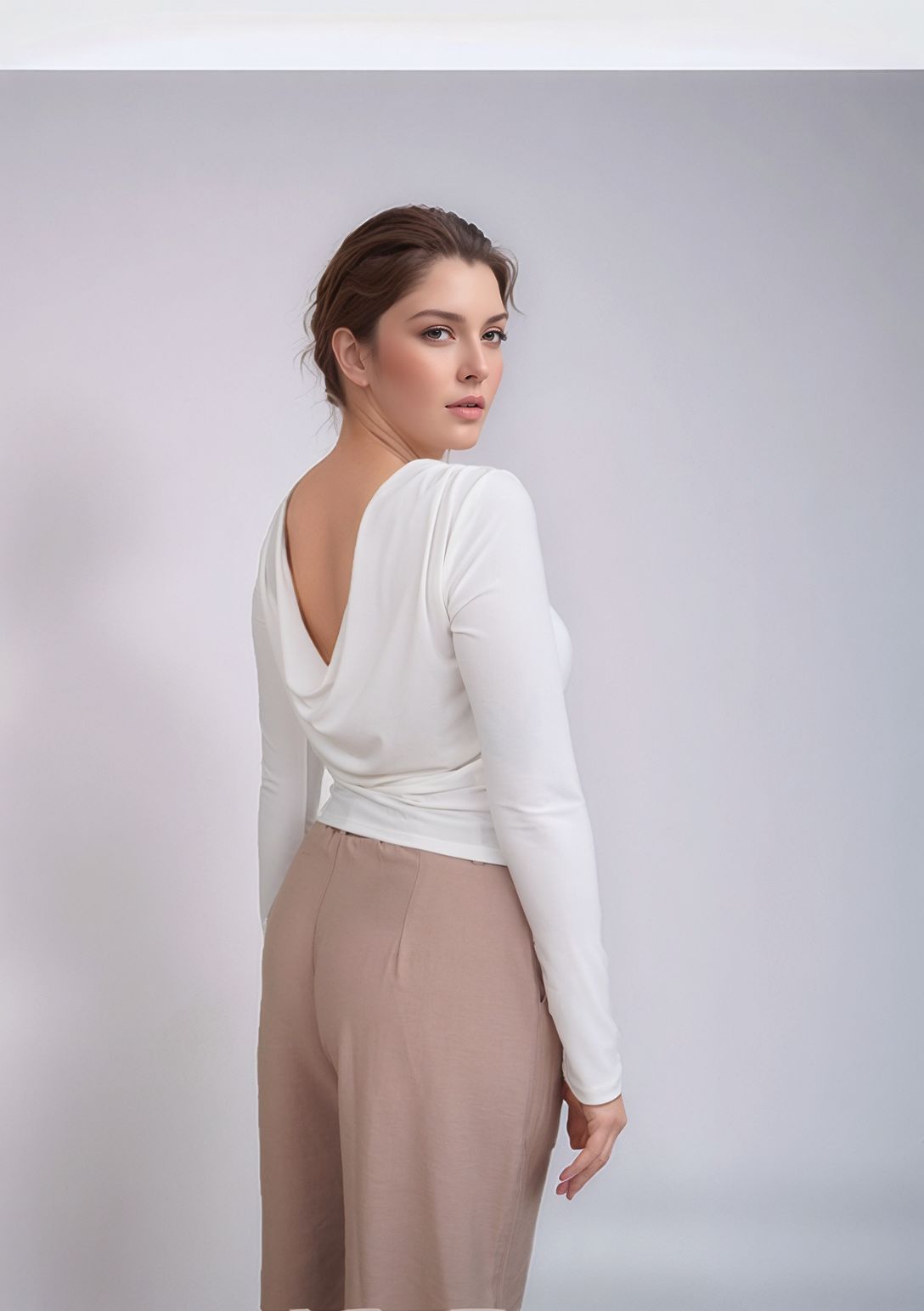 TOP EN ACETATO TIENE UN SCOTE DRAPEADO EN LA ESPALDA, PERO TAMBIEN SE PUEDE USAR CON EL ESCOTE EN FRENTE, TIENE LAS DOS POSIBILIDADES Y TIENE DOBLETELA EN FRENTE